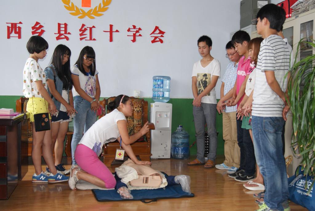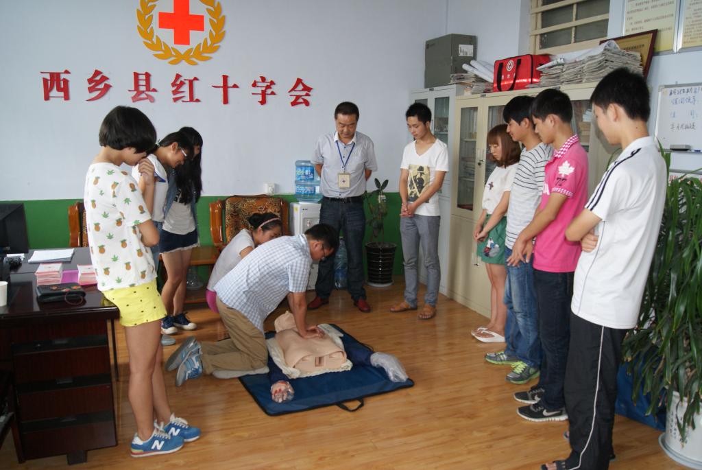 在发放仪式上,县红十字会负责人向大家讲解了红十字会的发展历史、主要任务及志愿服务相关知识,开展了以心肺复苏为主的初级救护培训,勉励同学们树立远大理想,克服暂时困难,做一个对社会有用的人。