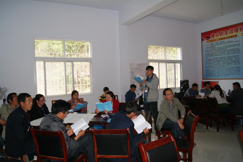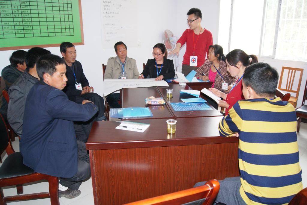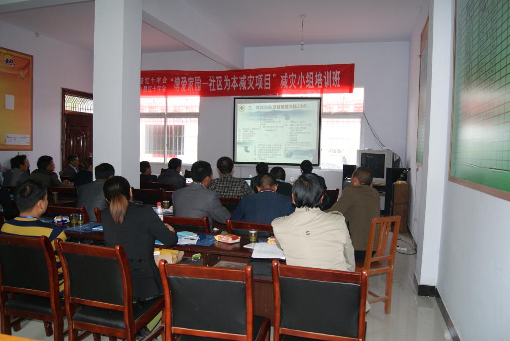 培训班上,县红十字会首先向参训人员发放了培训前测试卷,通过测试了解村民对红会及项目知识了解情况,然后运用PPT课件,采用图文并茂的形式,向减灾小组成员讲解了红十字运动基本知识、项目简介、减灾小组职责及分工、硬件工程管理等知识。在为期1天的培训中,全体参训人员至始至终都能专心听课,认真做着笔记,特别是在互动环节中大家都能积极发言,相互交流,并以村为组,还就如何履行好社区减灾小组成员的分工、职责、做好项目后续维护和管理、以及如何做好防灾减灾工作进行了分组讨论。最后,县红十字会副会长郑伟作了总结报告,希望大家通过此次培训能够进一步了解香港项目以人为本,以社区群众的需求为出发点的项目理念,在项目执行中发挥好减灾小组成员应有的作用,紧密配合红会做好各项工作,大家不仅是项目的受益者、更是宣传者、组织者、监督者,在后期的社区教育培训中更要站到台上给群众讲。