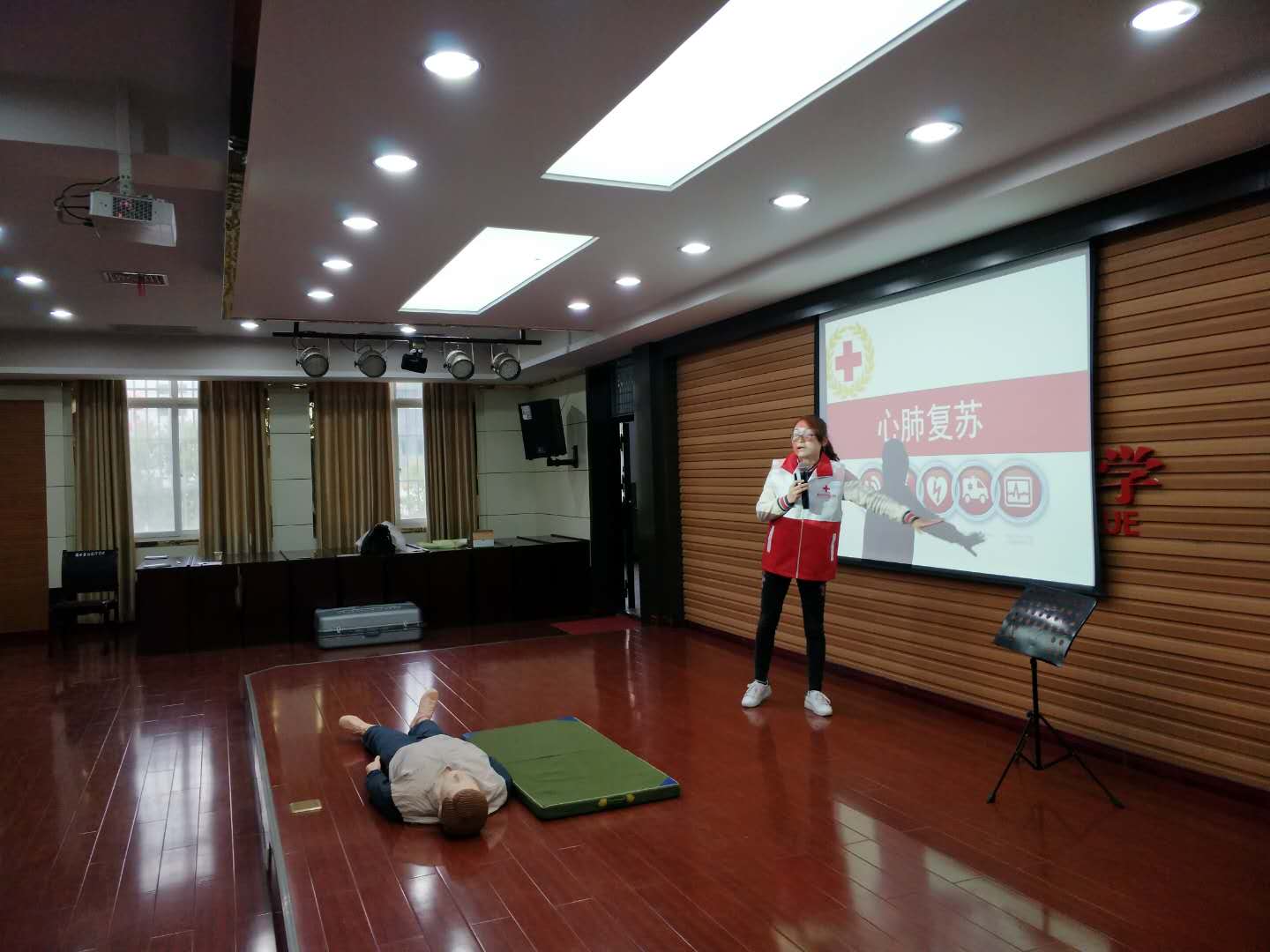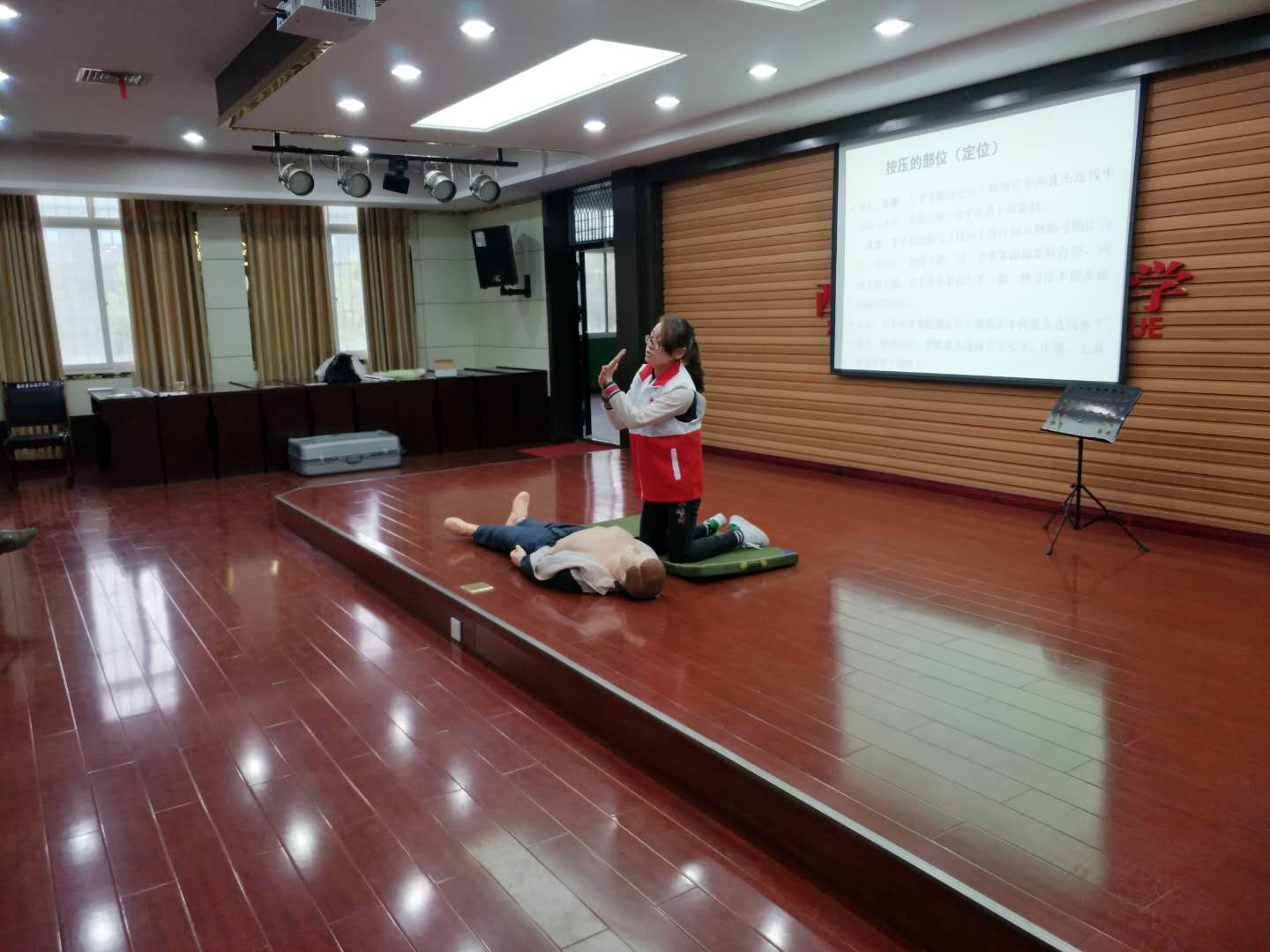 2018年4月11日,县红十字会培养的救护师资李怡蕊老师,在城北小学本校为60余名教师进行了心肺复苏技能培训,县红十字会工作人员现场指导。