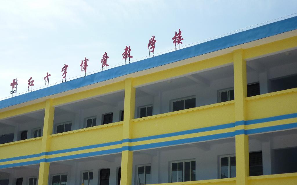 由中国红十字基金会援建的大河镇九年制学校教学楼,援建资金100万元